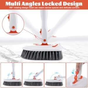 - γFlexible Rotating Brush HeadγThis shower scrubber can be locked in 3 angles (90Β°. 135Β°.180Β°).stays stable and won’t loosen when cleaning. The brush head can be rotated 180 degrees to clean dust and stains in crevices and corners. It is flexible and convenient and can be used in multiple scenarios.