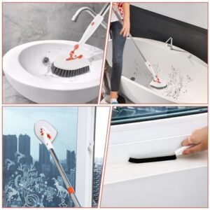 - γ3 in 1 Shower Cleaning BrushγThe shower cleaning brush comes with 1 detachable long pole .1 hook.1 crevice brush and 3 replaceable cleaning heads in this kit.The stiff bristle brush can effectively clean hard-to-clean corners such as gaps in floor tiles and stubborn dirt.Microfiber pad for cleaning window stains.The scouring pad is suitable for cleaning bathtubs and ceramic tiles.