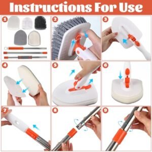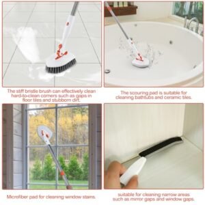 - γConvenient to UseγThese bathtub scrubbers come with detachable brush head.easy to disassemble. The three brush heads can be easily replaced. Just stick the scouring pad and microfiber pad on the brush head and you can use it.