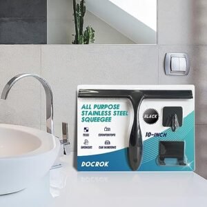 Made of 100% rust-resistant stainless steel and premium silicon blade. Docrok shower squeegee with ergonomic design and exquisite craft will effortless remove the water drops. soap scum and other sources of buildups with just a few wips.