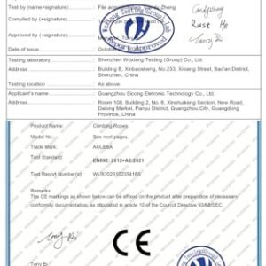 - CE Certified: Our static climbing rope meets the CE Certification of EN 892: 2012+A2:2021 Standards (Certificate No.: WUX202310235416SC). ensuring quality control. Bright color ensure great visibility in all weather.
