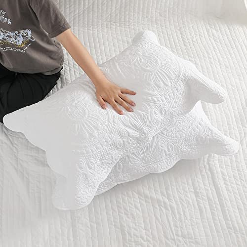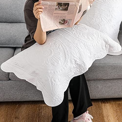 - EXQUISITE AND CHIC LOOK: Package includes 2 standard size white pillow shams. measuring 20(Width) x 26(Length). flower quilted pattern design add a hint luxurious and elegant