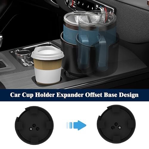 - Offset Base Design: This car cup holder expander adapter features unique stretchable base can expand 3.08-3.92 diameter. fit for vehicles cup holders securely. The cup holder expander equip with offset base can maximize space even in the small conditions. and will not affect the use of vehicle’s center console. gear shifter or another car cup holder. The offset base is easy to use 2 cup holder expander side by side. highly recommend to get 2 SAGRUILA car cup holder expander at the same time