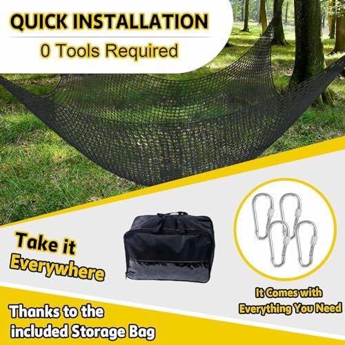 - SIMPLE INSTALL AND STORAGE: The climbing net is easy to hang up and fix – Anyone can do it. you don’t need any specialized tools and the kit comes with everything you need. The kit comes with everything you need. including 4 carabineers; 8 colored bells; about 3ft fix rope and 1 storage bag. So you can take it anywhere. you can also choose to order additional swing straps and then mounted them. Once installed. the kids will have hours of fun climbing and just hanging out