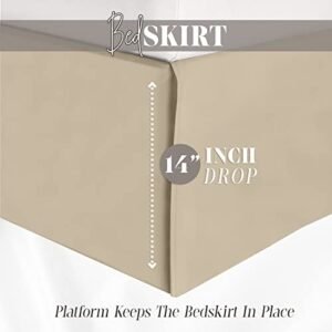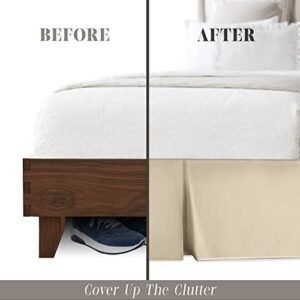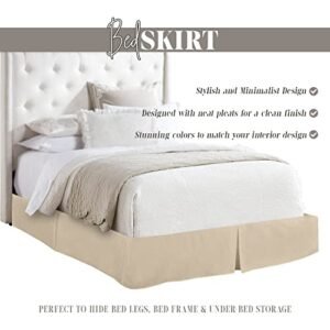 - PREMIUM BUILD AND STAYS IN PLACE- Meant to be durable and only gets better after every use. Our wrinkle resistant fabric will ensure a No Iron finish. which will allow you to take your bed skirt from your dryer to your bed without any wrinkles. Place between your mattress and box spring to update your bedroom decor. Our bed skirts are perfect to hide your bed legs. bed frame. and under bed storage.