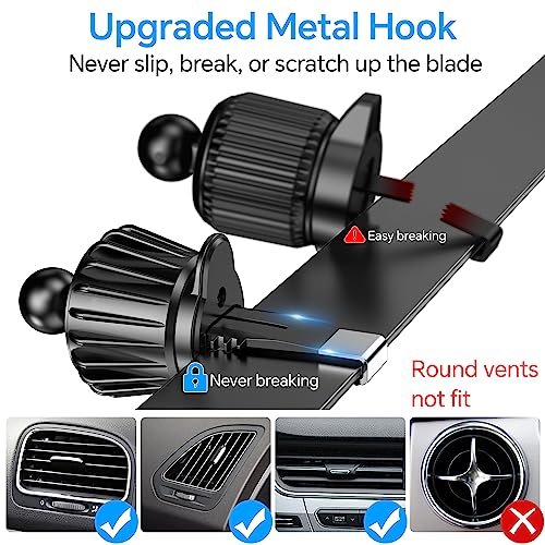 2.Car Vent Holder Mode: Easy to install and remove!Steel hook material. permanent use. not like plastic hooks that have breaking problems and need to be replaced often.1 steel hook is more durable than 15 plastic hooks!