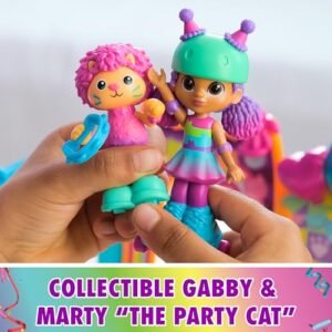 - GAME ROOM & SKATE PARK: Gabby’s Party Room features a skate ramp. stage & skating rink Features cute accessories like a claw machine. & Skater Gabby & Marty the Party Cat figures with working skates