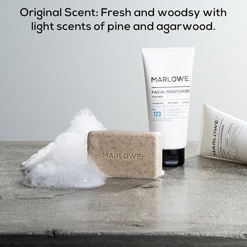 • Fresh Masculine Scent: Our Original exfoliating soap bar is lightly scented with agarwood. followed by a balance of sandalwood and musk. Experience the fresh invigorating scent of your favorite MARLOWE. scrub soap