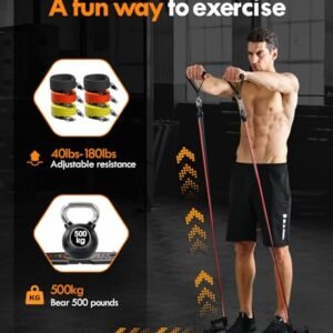 - γWorkout Equipment SystemγPortable Exercise Pack is used with various workout equipment attachments:Foldable Push up board.3-section Bar.6 Resistance Bands. 2 Ankle Strap.Door nachor.Ab roller wheel.Which can fulfill most of your workout needs in the gym.