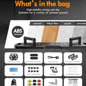 - γFitness System for AnyoneγVersatile home portable fitness device. We’ve kept the professional push up straining. Added foldable fitness bars and wrist/ankle straps. Ab roller wheel and 6 resistance bands so You can perform more exercises. Light but stable enough. You can choose the intensity according to your ability.