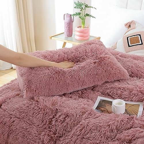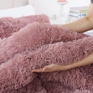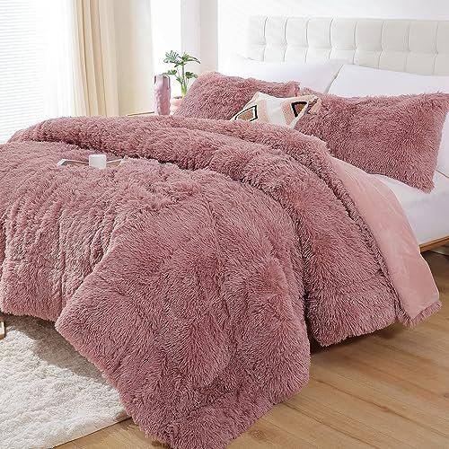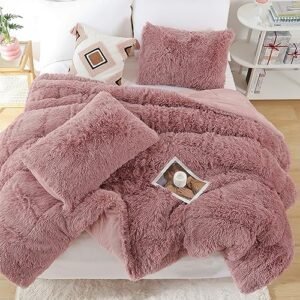 - WARM AND COMFORT: fluffy comforter set queen make you warm and cozy during the cold weather. Meanwhile. this queen plush bed set is light enough that you don’t overheat. Bean paste faux fur bedding set offers warmth. comfort. and chic contemporary update to any dormitory. bedroom.