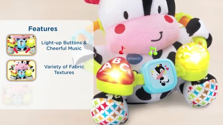 - Perfect for Play: An easy-to-grasp bead ring hangs around the talking cow toy; the bead ring has light-up buttons & a spinning square for fine motor skills development