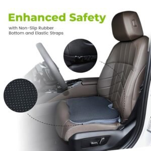- Enhanced Safety with Non-Slip Rubber Bottom and Elastic Straps: This car seat cushion features a non-slip rubber bottom and elastic straps to securely stay in place. Whether accelerating or braking. the cushion remains stable. ensuring safety and comfort